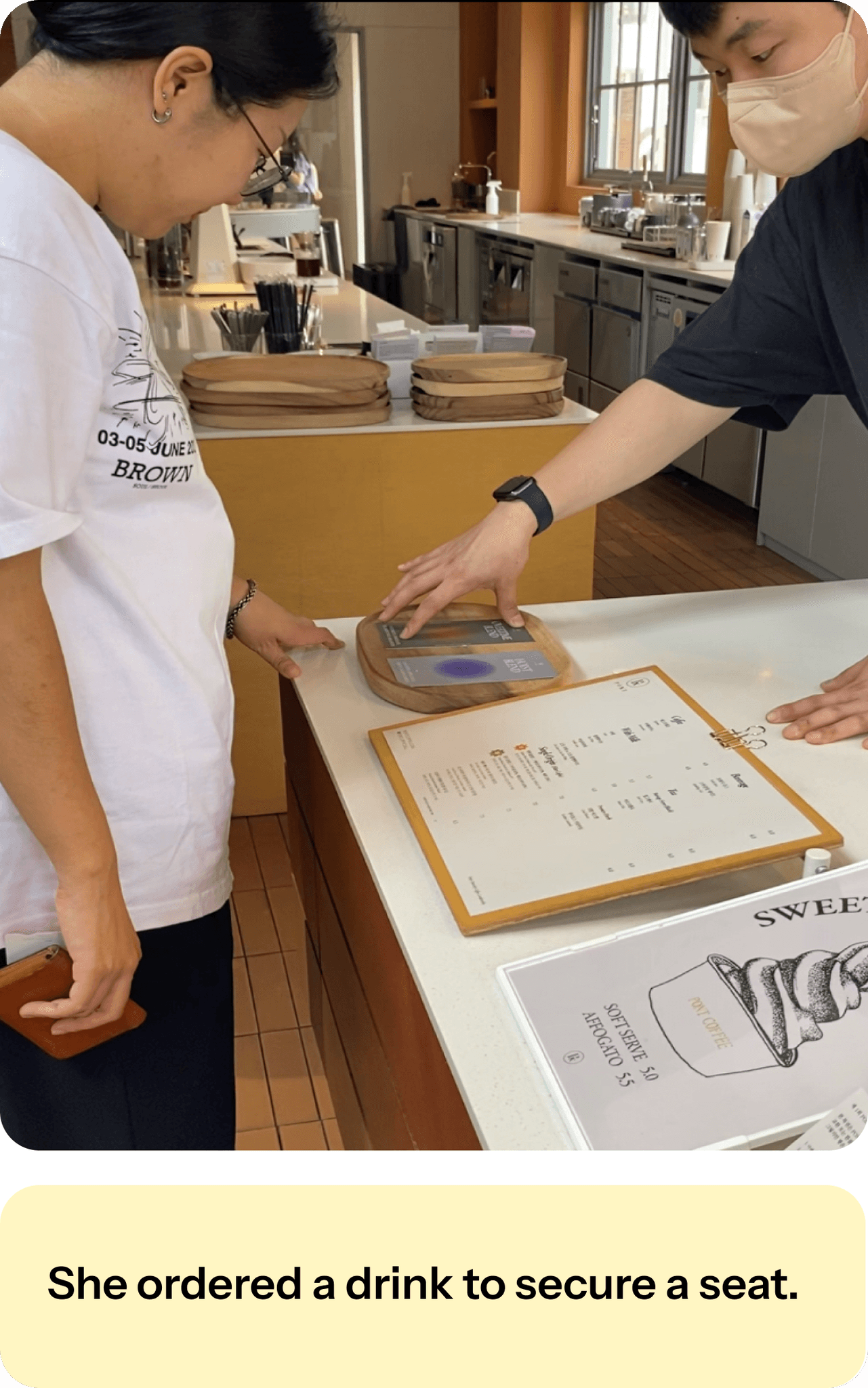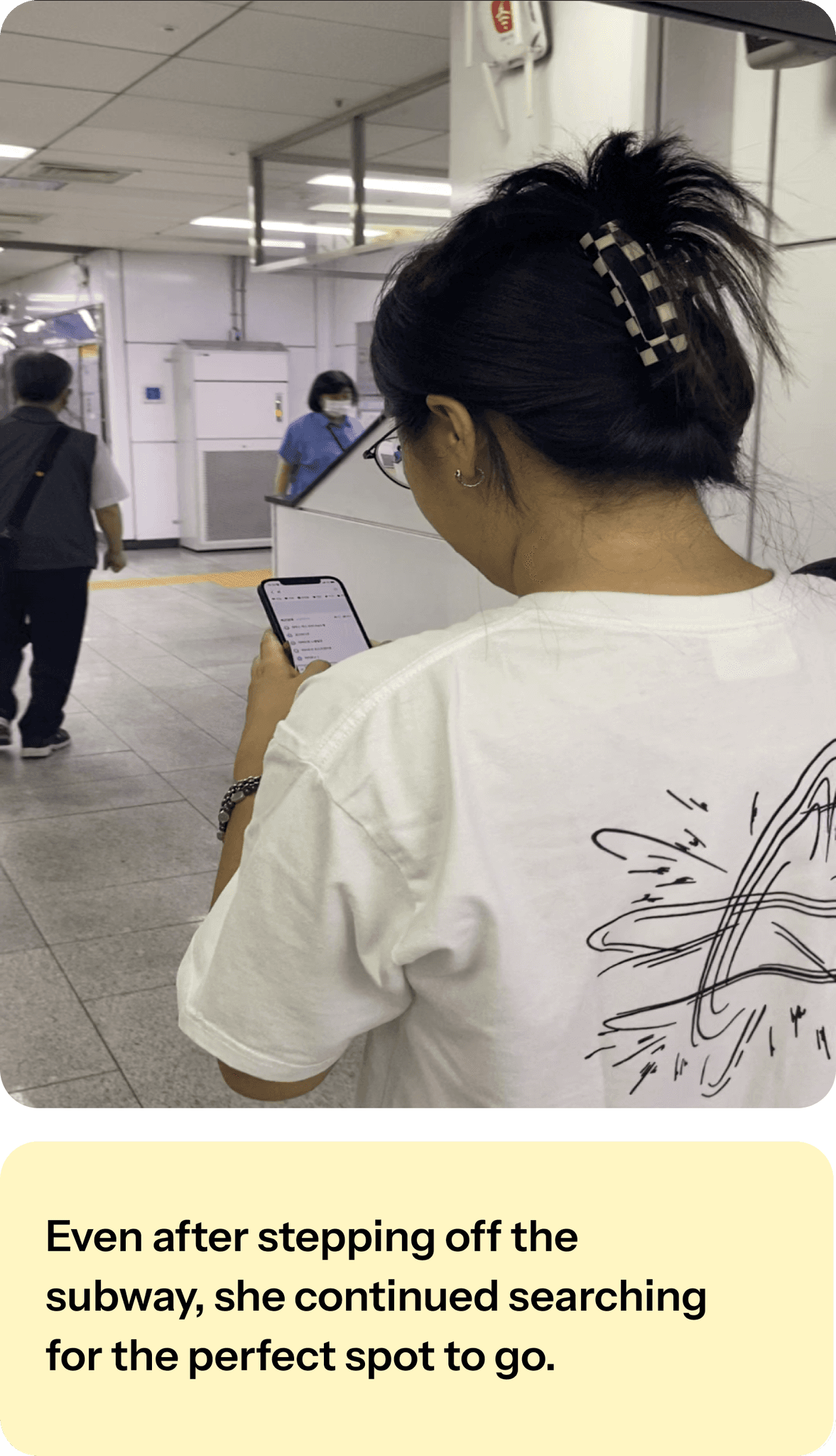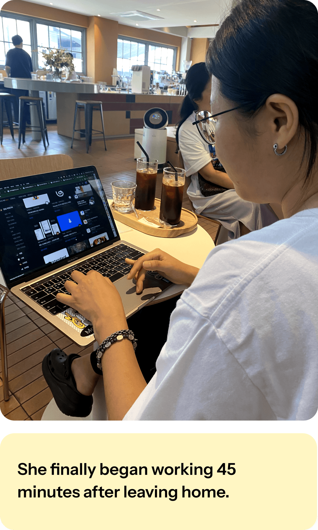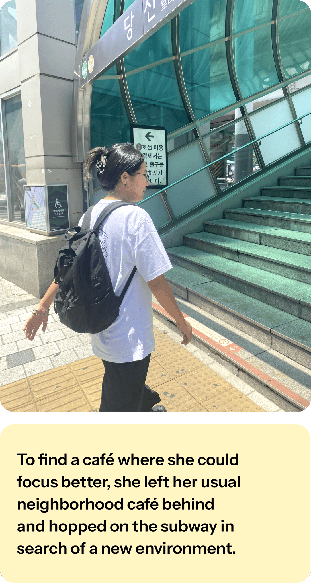 To find a café where she could focus better, she left her usual neighborhood café behind and hopped on the subway in search of a new environment.