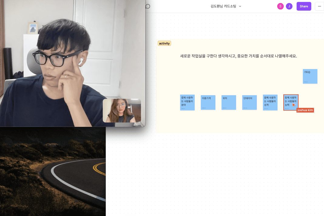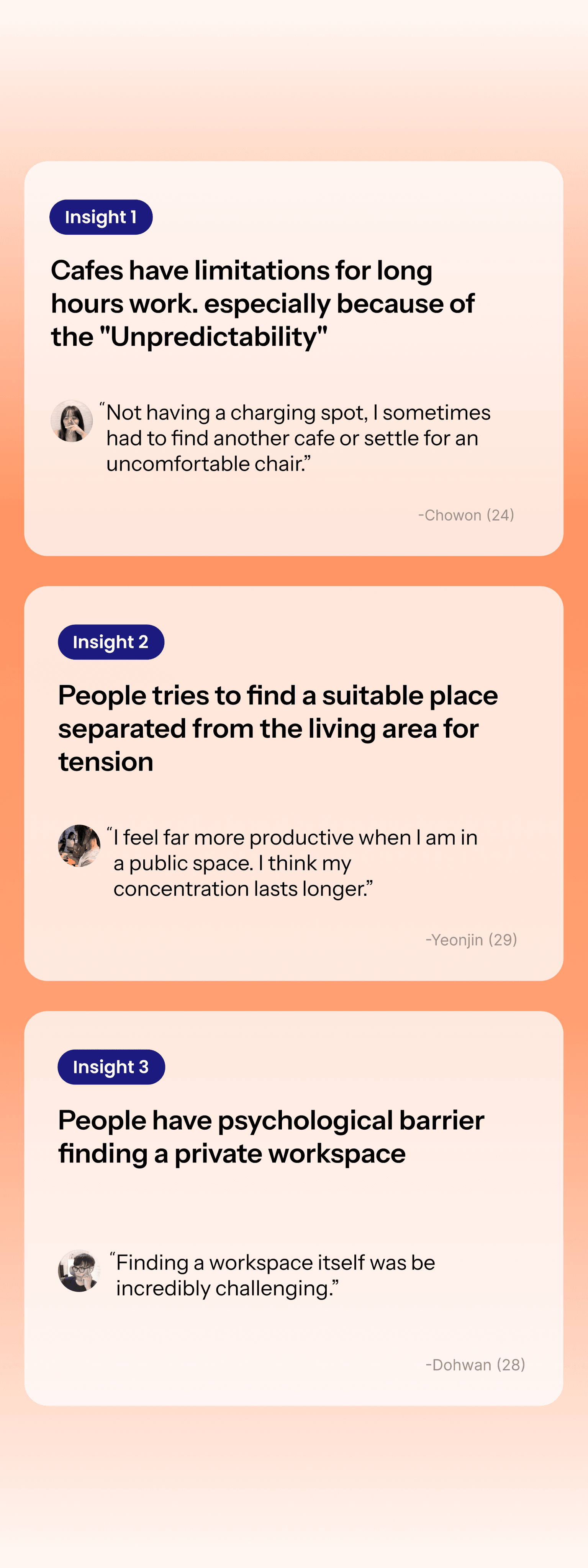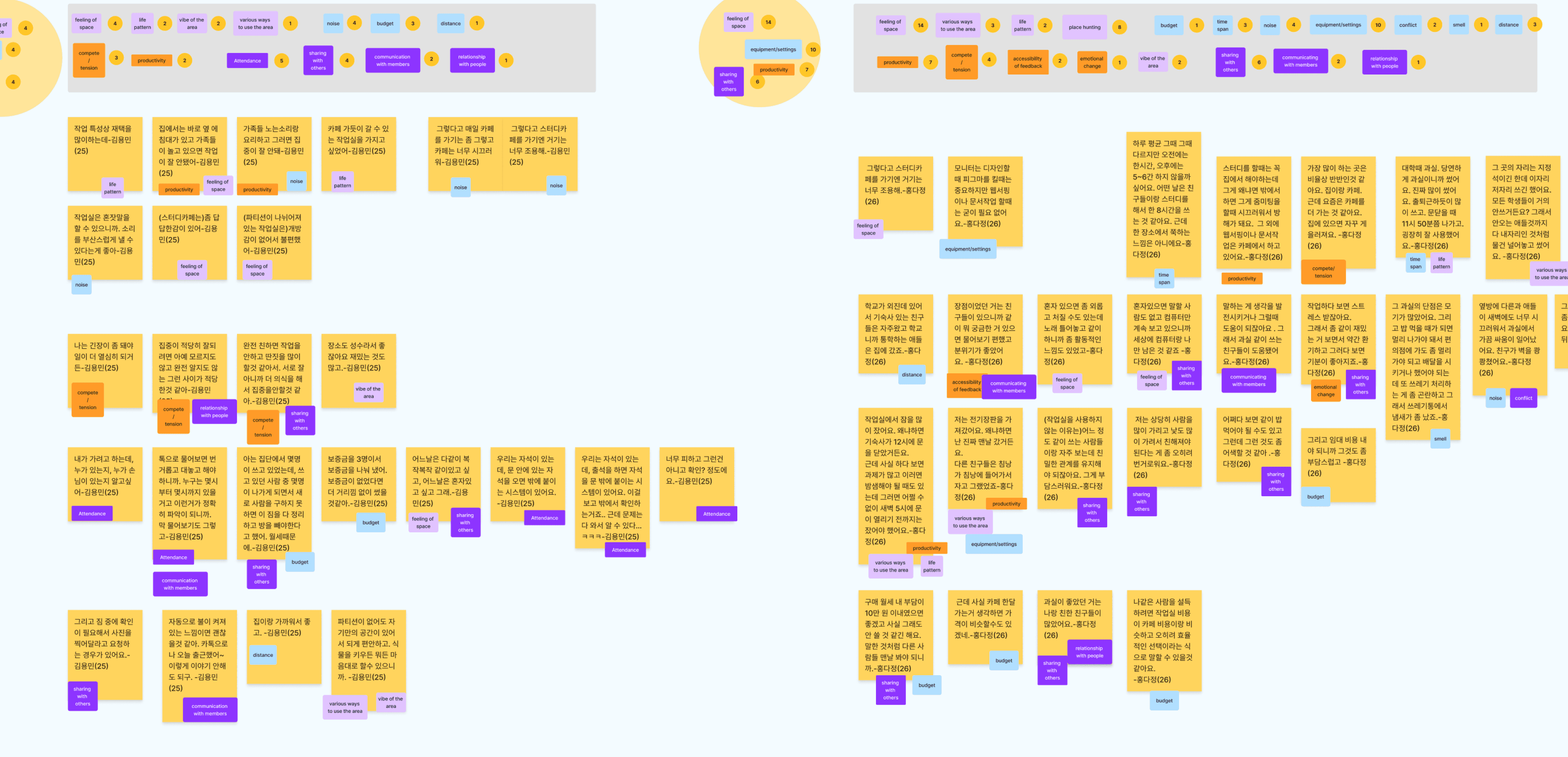 I interviewed 10 individuals who have experience using various kind of workspaces and conducted the card-sorting activity.