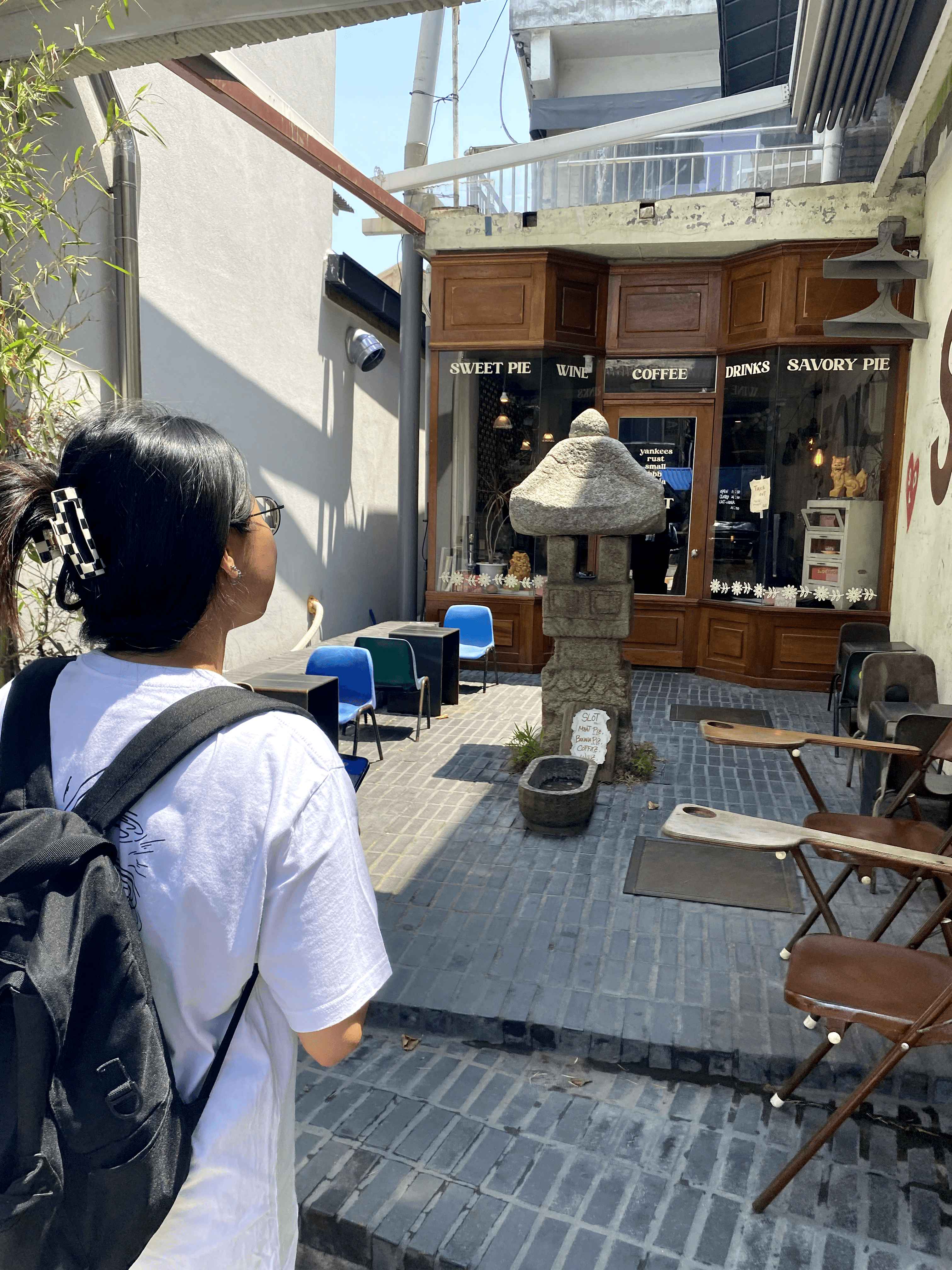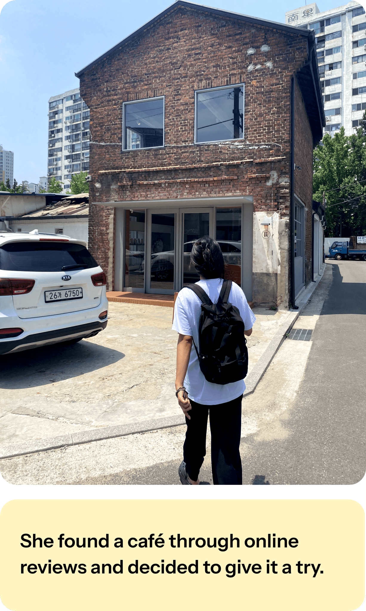 She found a café through online reviews and decided to give it a try.
