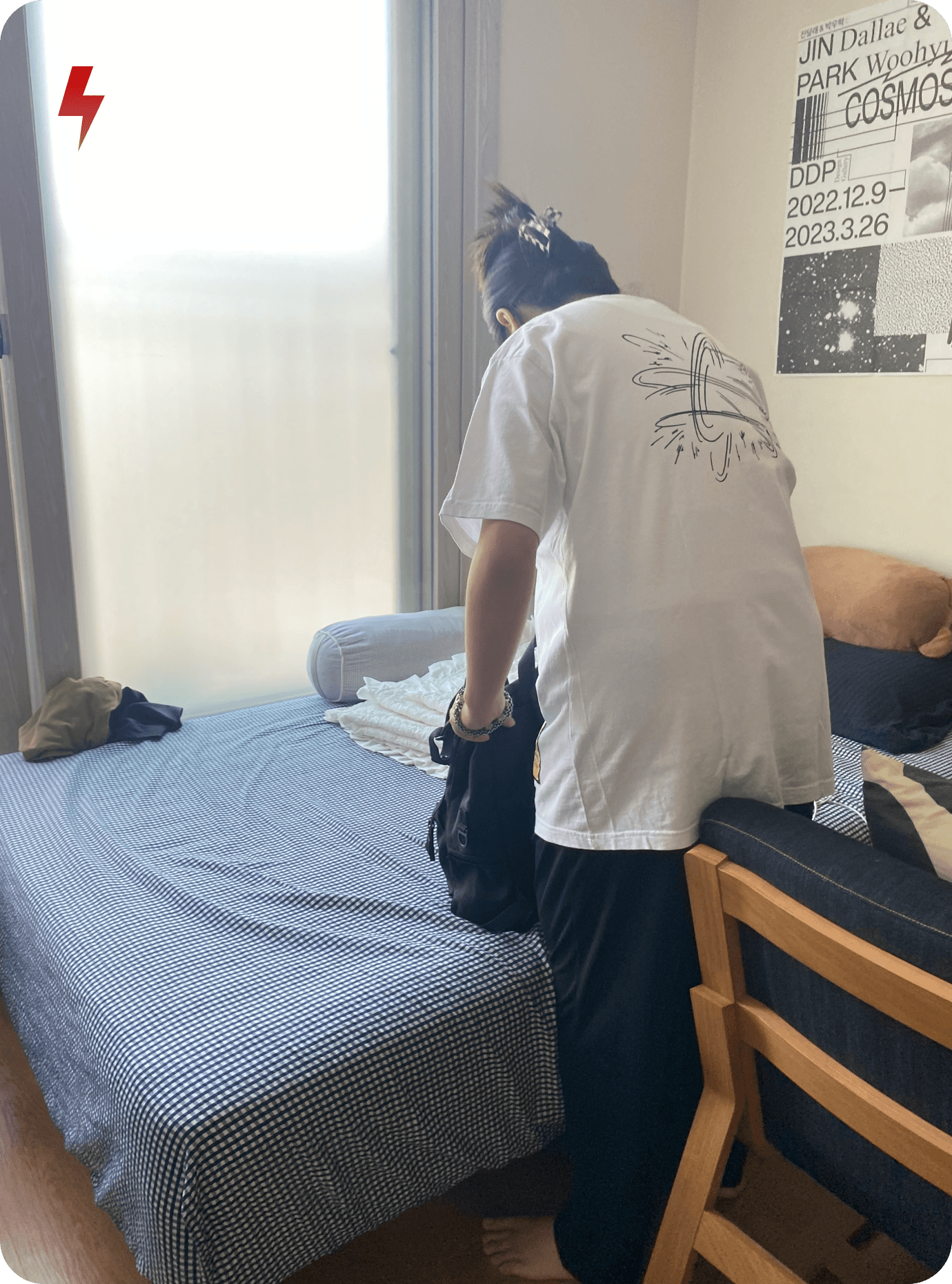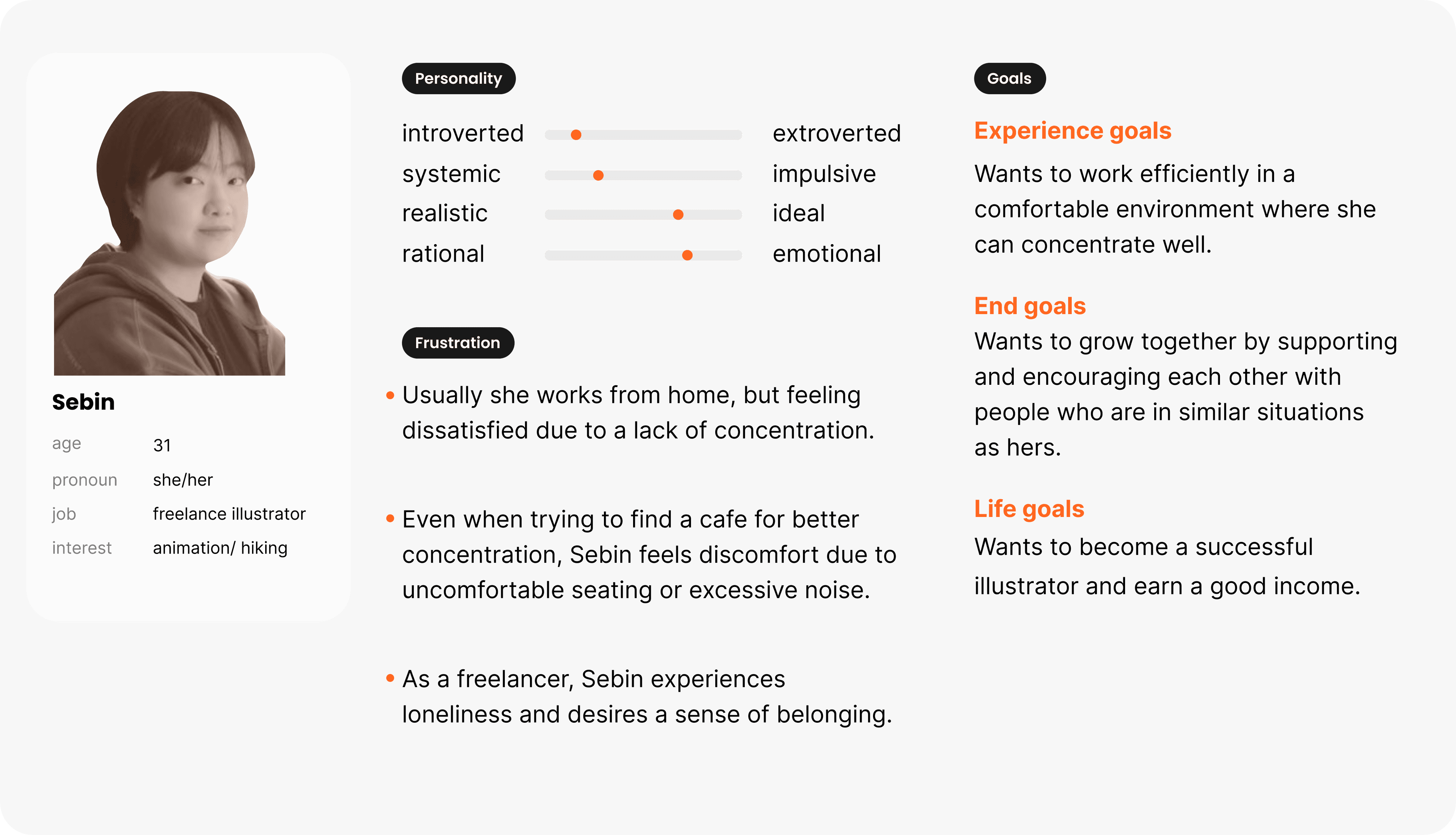 Sebin, who lives in a small studio, feels frustrated and finds it hard to concentrate while working alone.