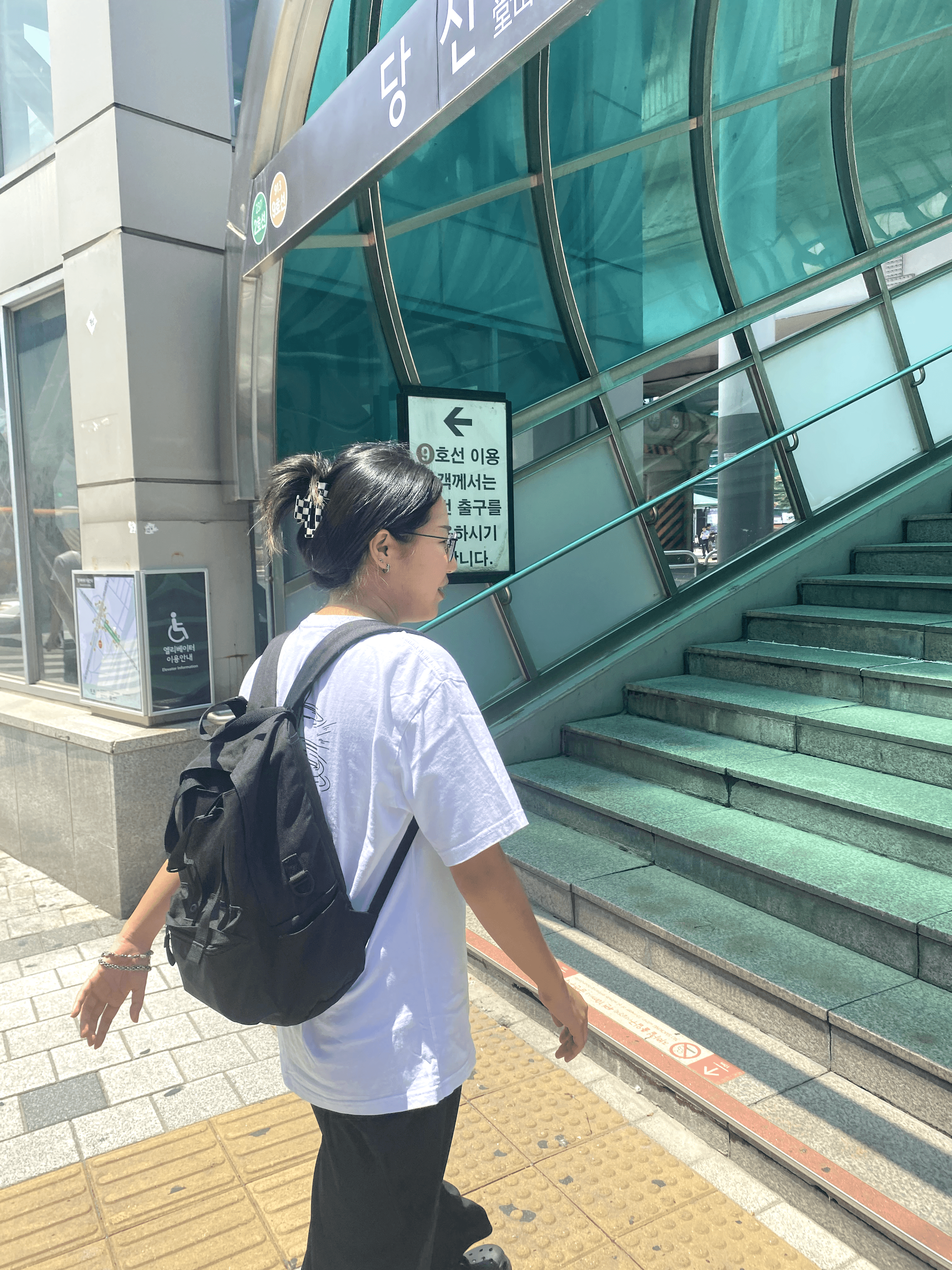 Even after stepping off the subway, she continued searching for the perfect spot to go.